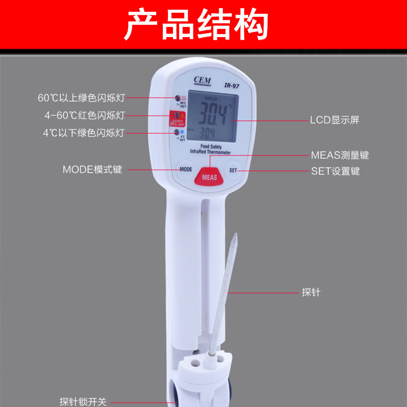 CEM Huashengchang thermometer food and meat pin type core thermometer infrared thermometer IR-98 97