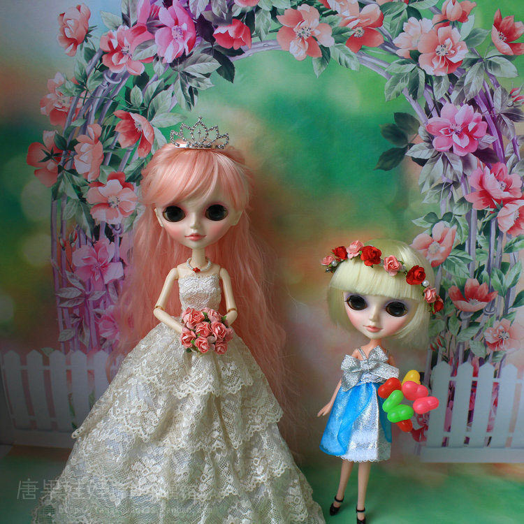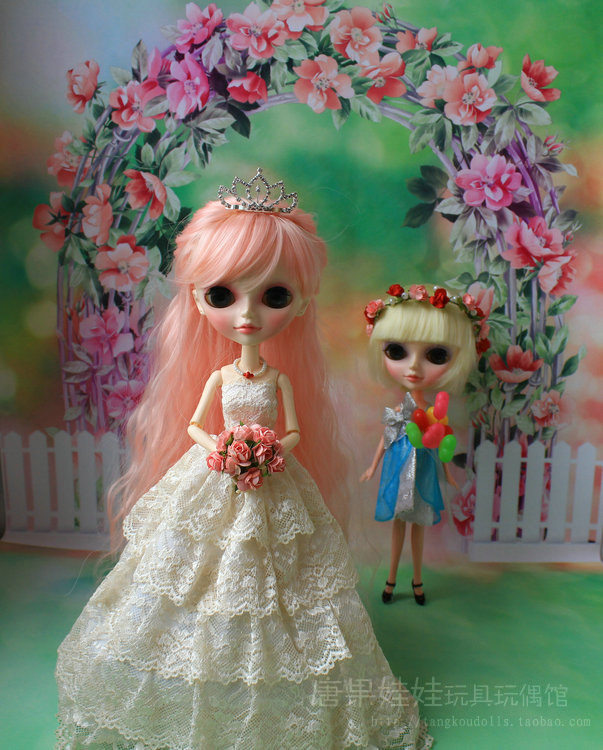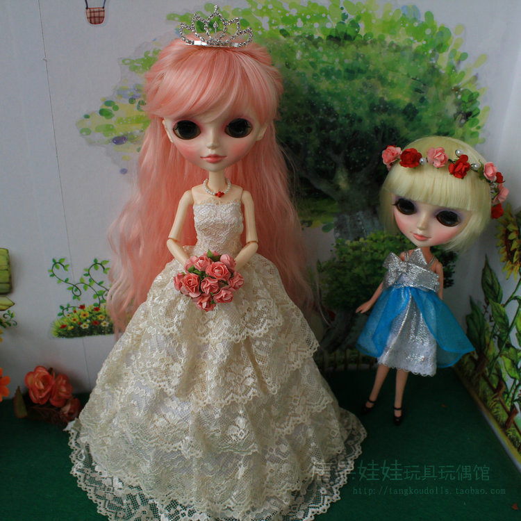 Doll dress beige 5 layers lace upscale wedding dress 4 5cm crown plug 3 powder air roll long hair