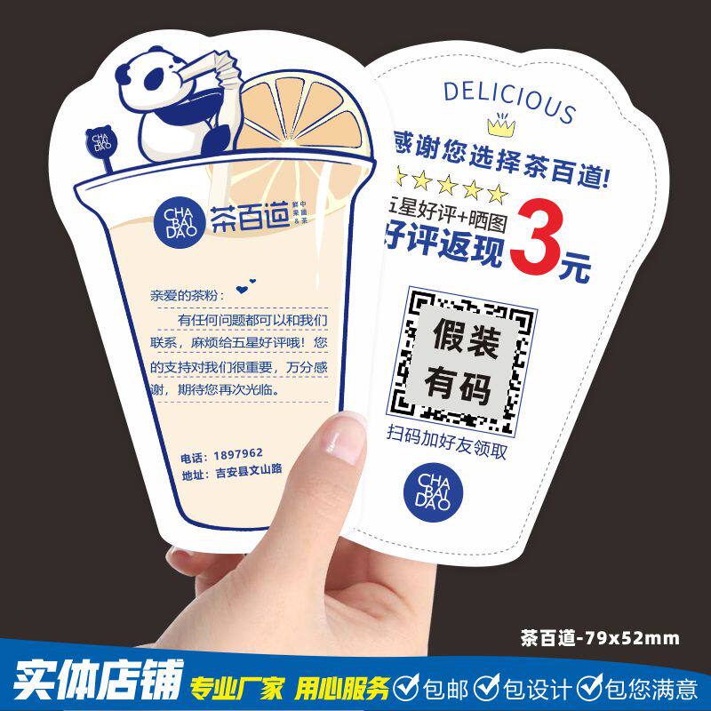 Custom Print Tea Thyme Milk Tea Shop Takeaway Delivery Distribution Menu Vegetable Card Coupon STAMP Number of Zanka Printing