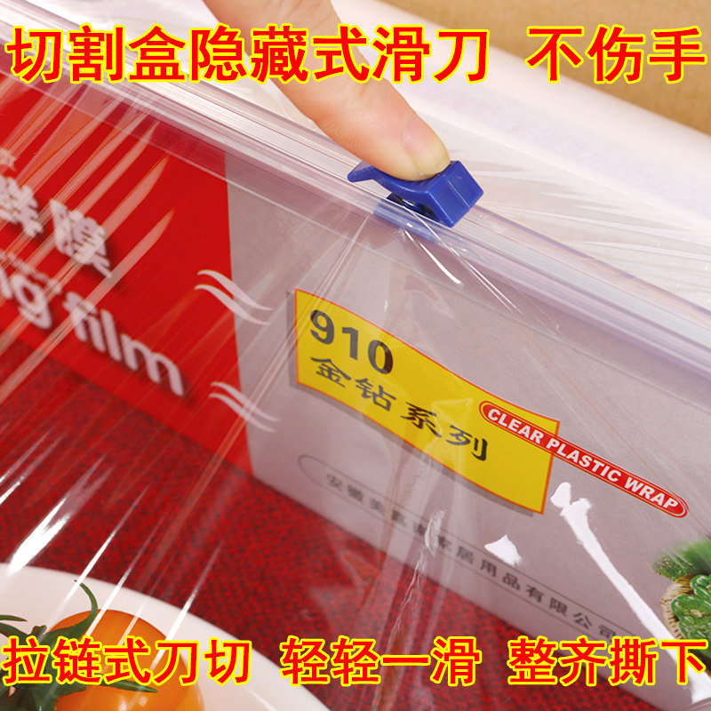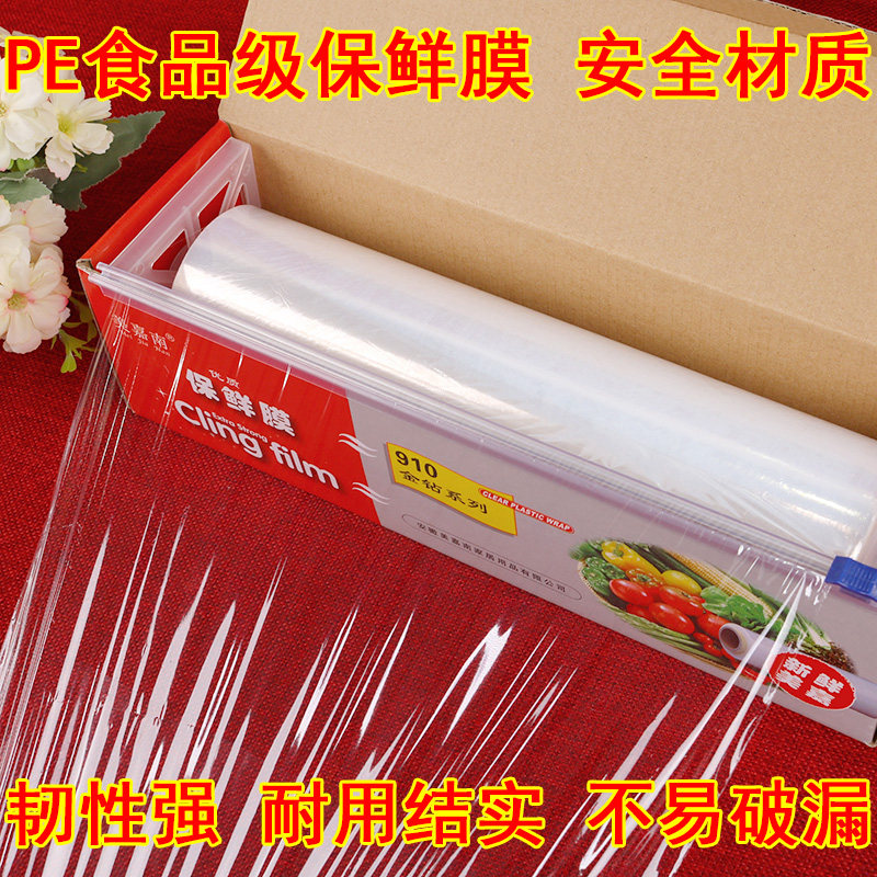 High quality PE food cling film Kitchen food cling film with cutter cutting box PE film large roll household refrigerator