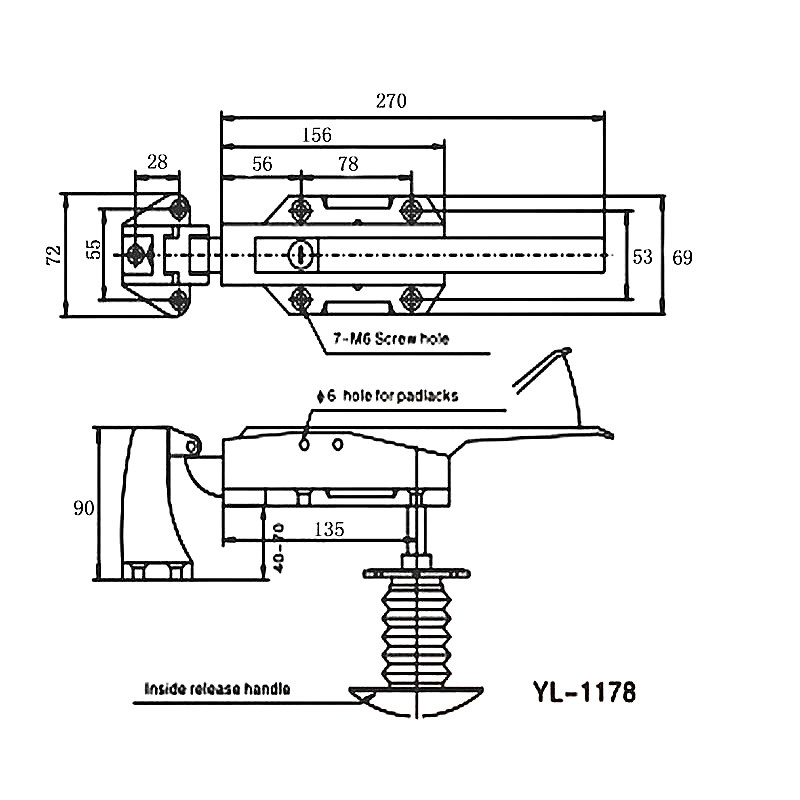 Freezer door lock YL-1178 drawing reference