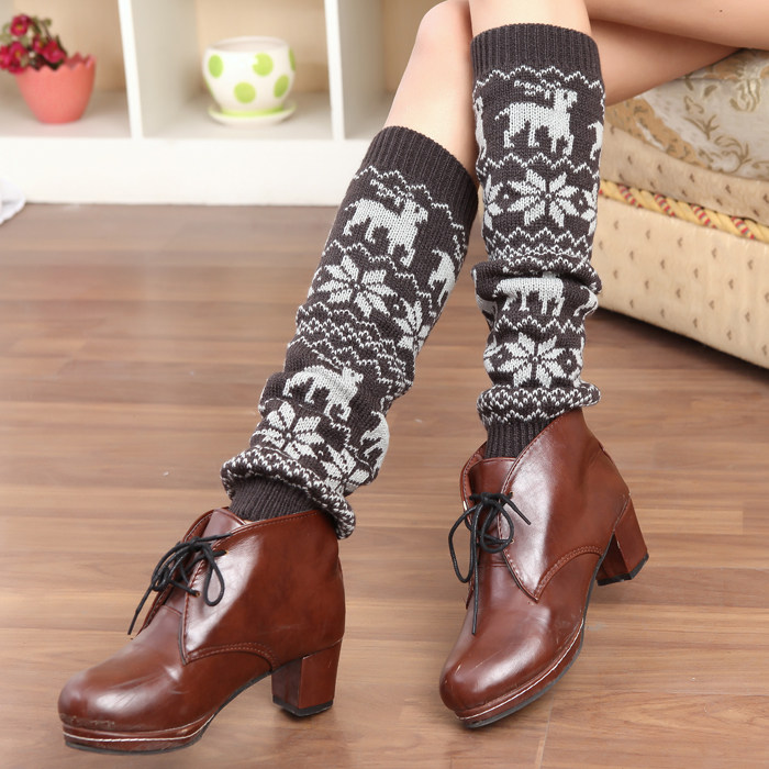 Korean version of the new autumn and winter round point Little Bear Snow Flowers Little Deer Socks set foot cover Knitted Wool thread leg sleeve Bubble Socks