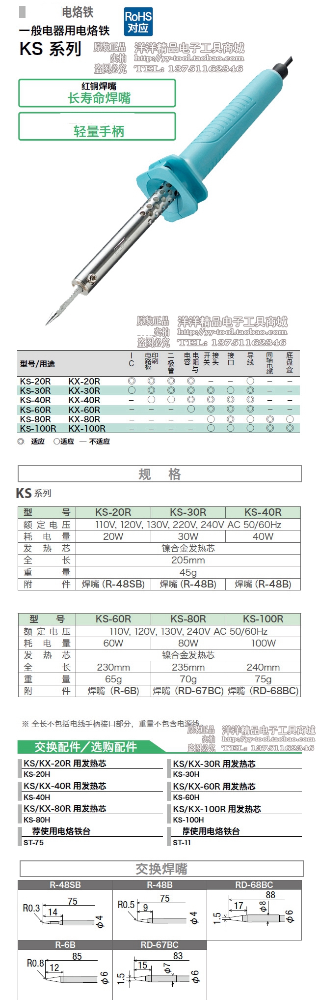 Japan GOOT Taiyo Original Imported KS Exothermic Electric Iron KS-80R Straight inserted 80W electric soldering iron