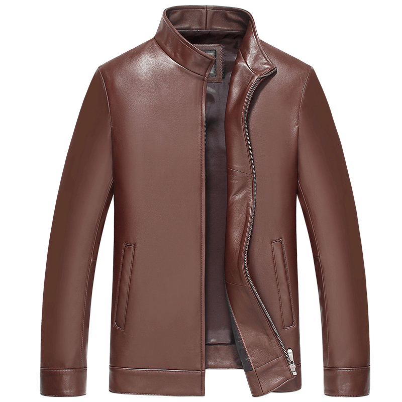 Haining 2020 autumn and winter leather leather men's sheepskin jacket short stand-up collar single layer leather jacket for the elderly