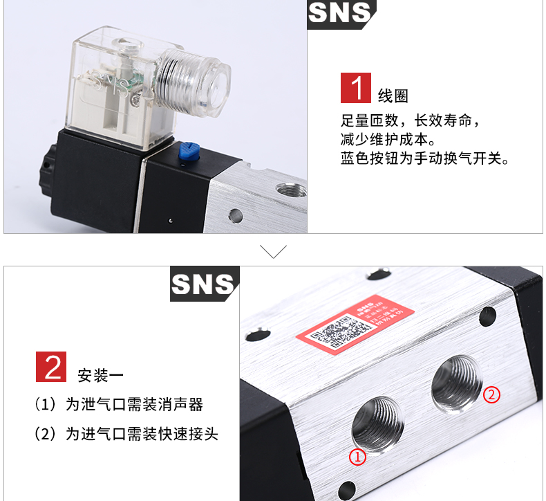 SNS Shenchi Two-way solenoid valve 3V210 110310410220 320-06 08 10 15NC