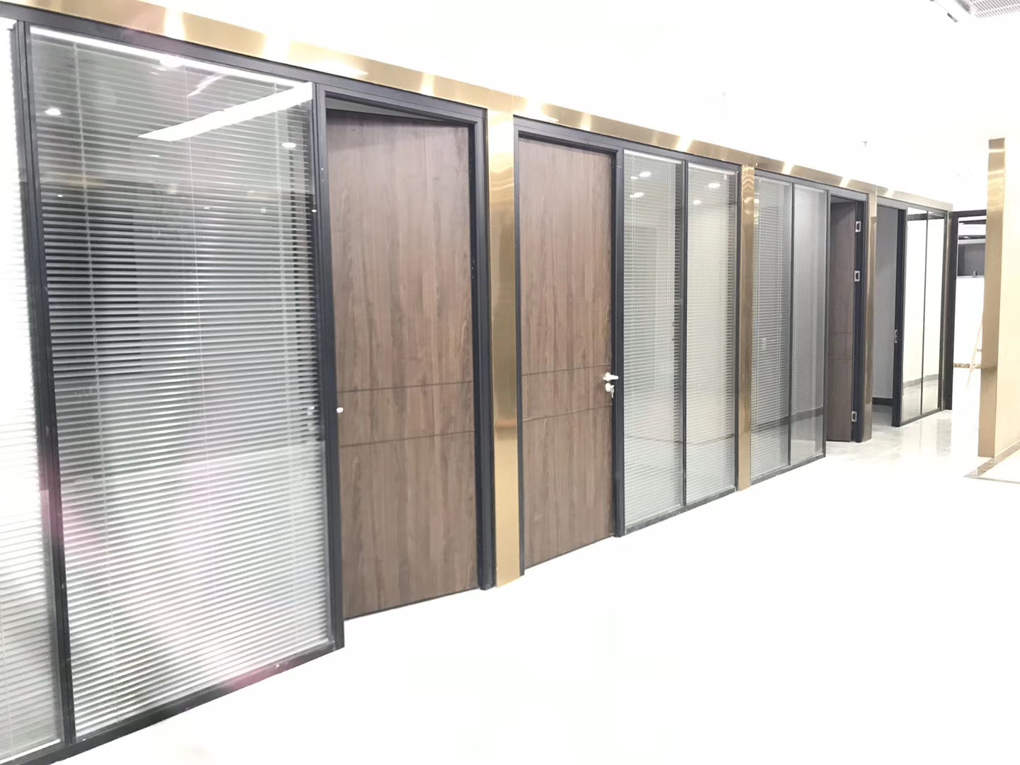 Guangdong glass partition wall office high partition aluminum alloy double glass louver finished product Guangzhou tempered glass partition