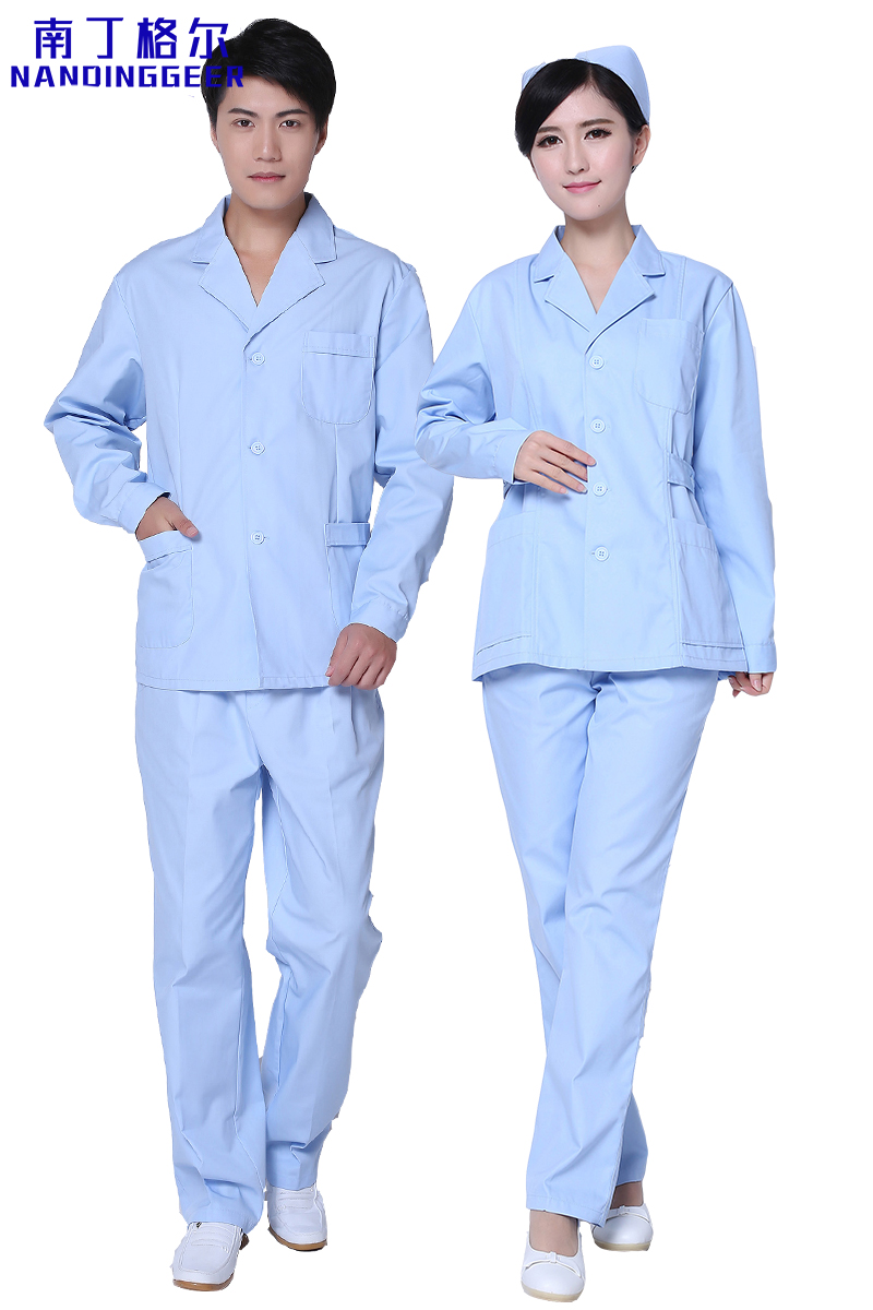 Nightingale white coat short long-sleeved two-piece suit Blue jacket male and female doctors nursing home caregiver clothing