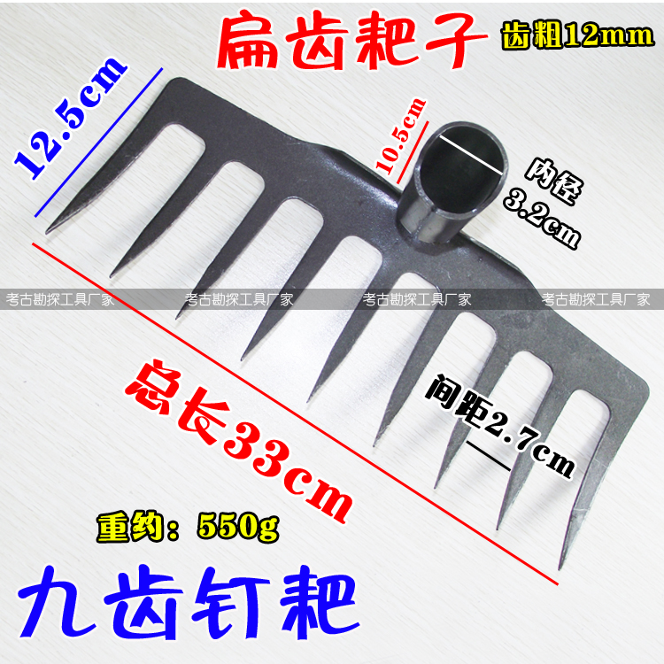 Wooden handle nail rake hoe nine-tooth nail rake garden shovel rake peanut rake small hoe shovel iron steel rake agricultural tools