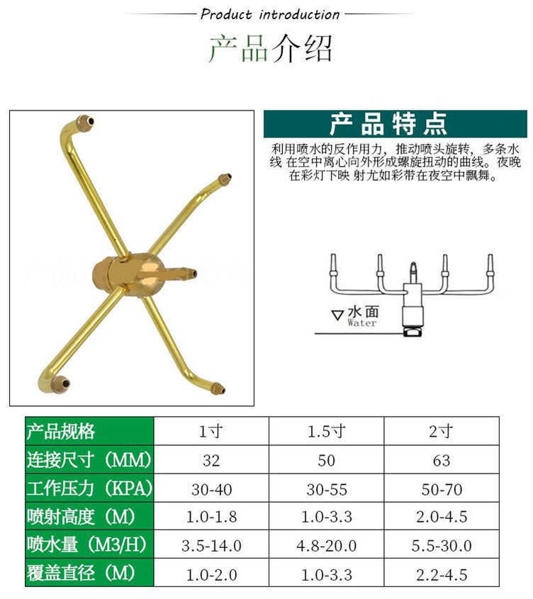 4 minutes 6 points 4 Rotation heads 1 inch 4 Rotation spray heads 1 5 inch 4 Rotation spray heads 2 inches 4 Rotation spray heads 1 inch 6 Wind water tankers nozzle 1 5 inch 7 wind water tankers nozzle 2 inch 8 roots