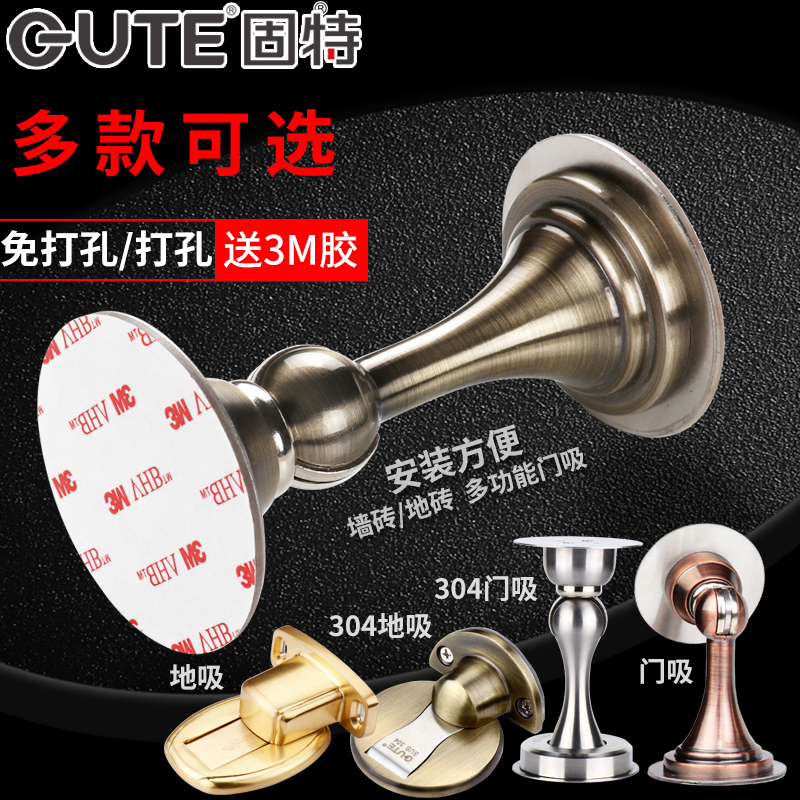 Gute door suction hole-free stainless steel suction door toilet floor suction door retaining wall suction Anti-collision door suction strong magnetic