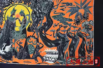 Traditional ethnic batik painting Peacock Princess Cotton handicraft wall hanging living room dining room fabric decoration mural hanging painting