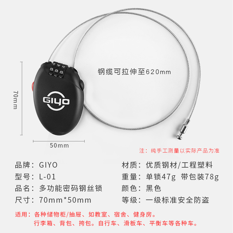 GIYO bike lock mountain bike lock fly steel cable lock mini combination lock anti-theft luggage backpack lock L-01