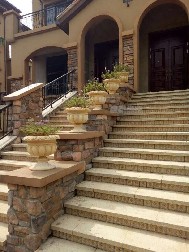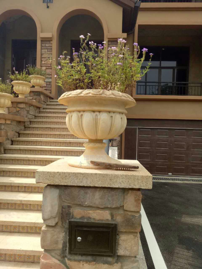 Sandstone relief flower pot Sandstone flower pot Real estate Garden landscape Municipal community Imitation yellow hydrangea Central European flower pot