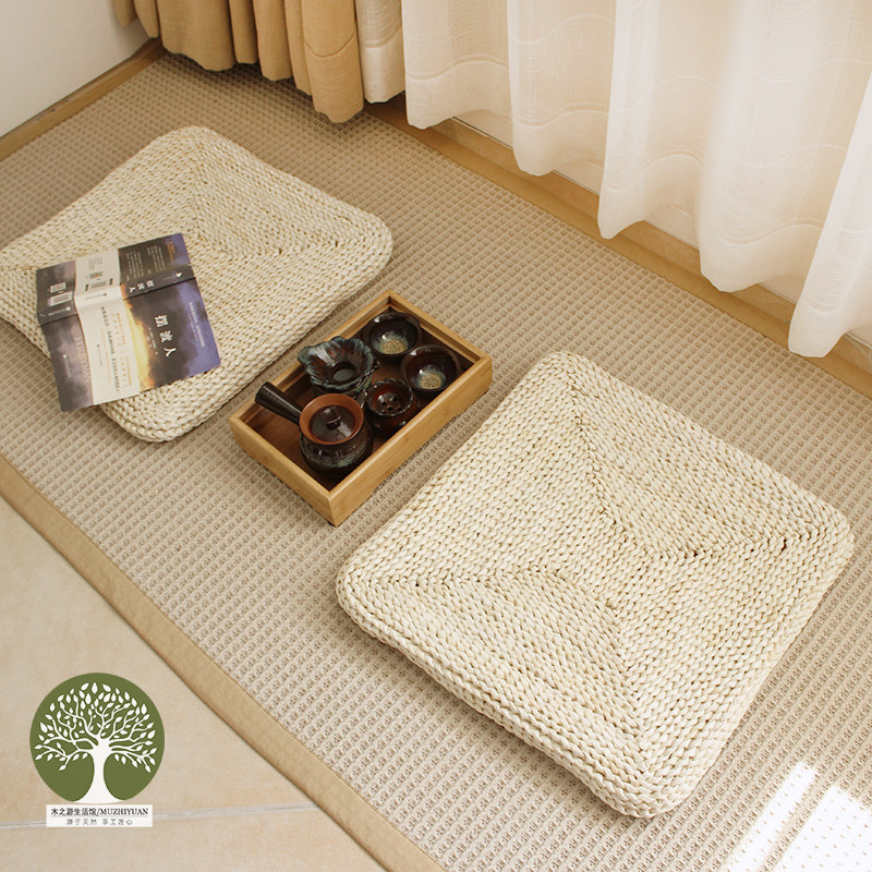 Handmade plant braided straw knitted breathable cool ass cushion corn leather square chair cushion car cushion Zen bushel