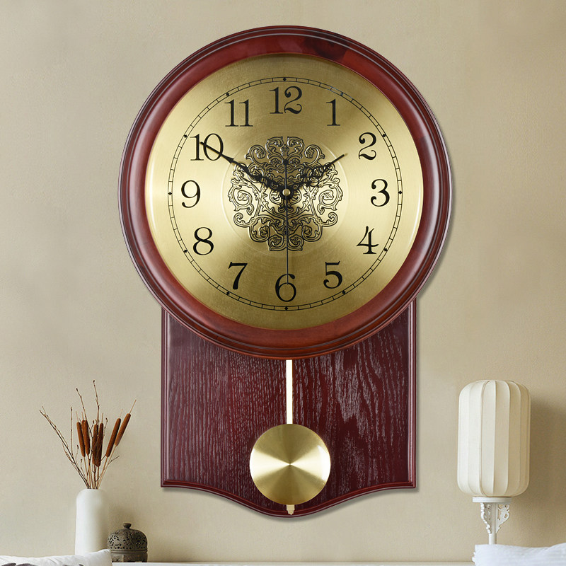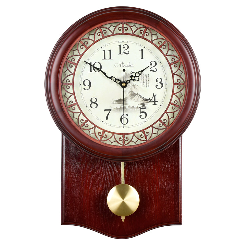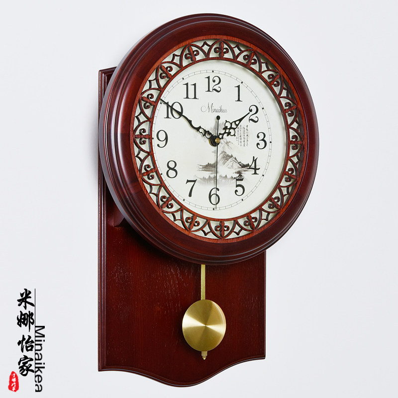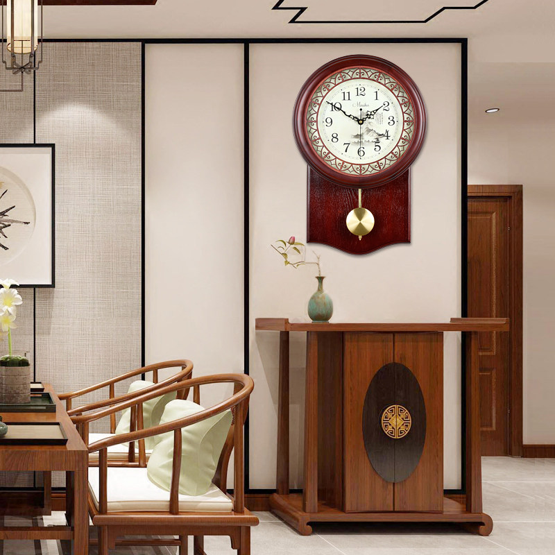 Ming and Qing Chinese living room wall clock large antique mute solid wood modern pastoral quartz clock fashion clock