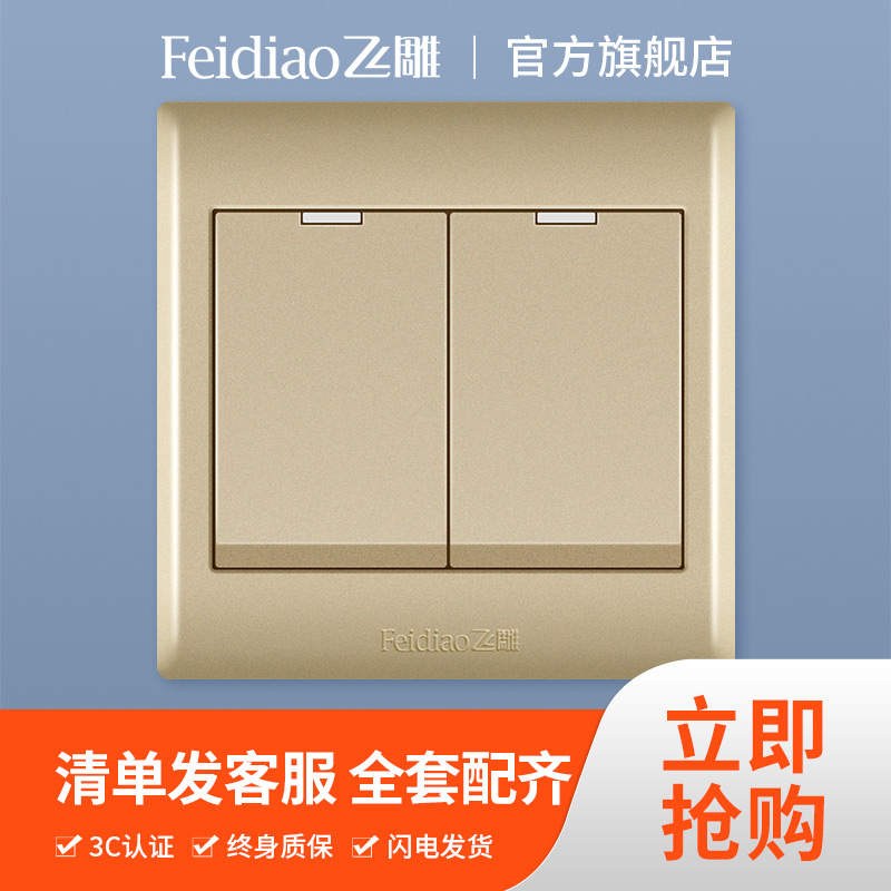 Fly Engraving Switch Socket 86 Type Concealed Home Double Switch Single Control Switch Panel Double two-position headboard Electric switch gold