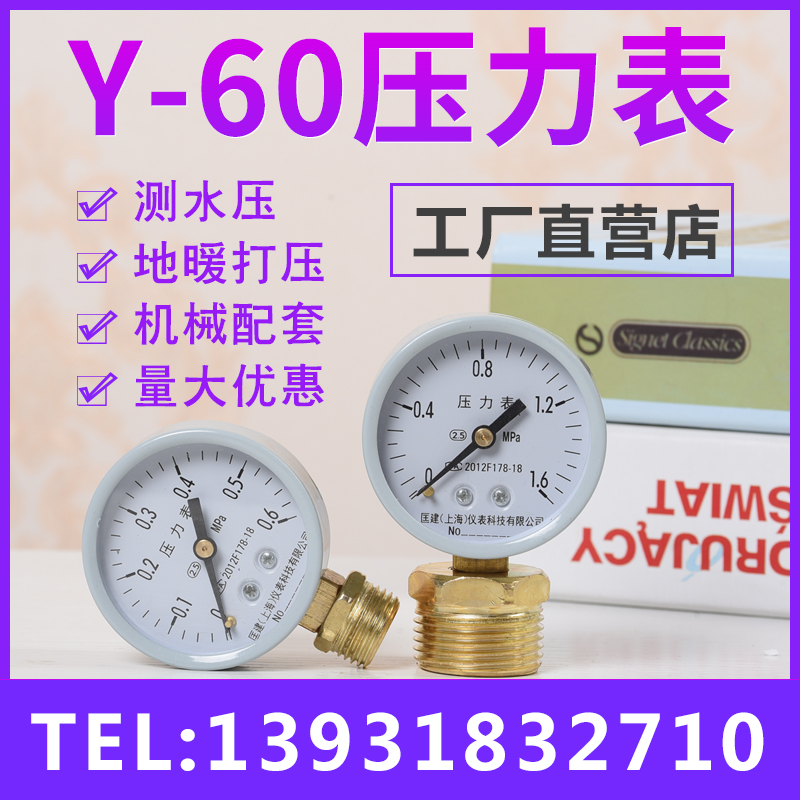 y-60 water pressure gauge Air compressor pressure gauge Floor heating fire tap water pressure household 0-1 6mpa water pressure