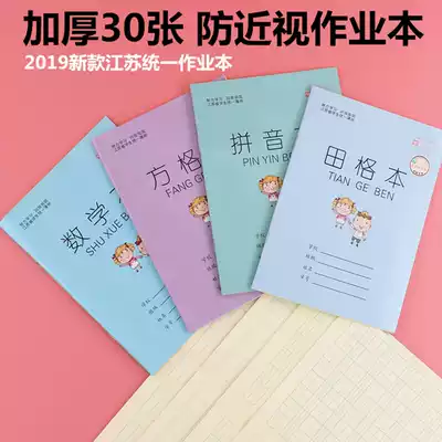Yangtze River thickened Anti-myopia new primary school students ordinary school synchronous exercise book 1-2 grade Jiangsu unified Tian grid pinyin square writing text hipster mathematics book 30 books
