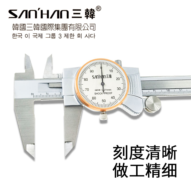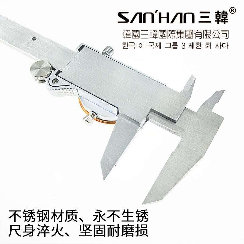 Imported South Korea Sanhan belt watch caliper stainless steel representative caliper 0-150 0-200 300 high precision precision