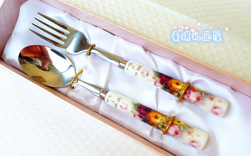 TOPMATE Korea imported kitchen tableware bone China handle stainless steel rose western fork full of five
