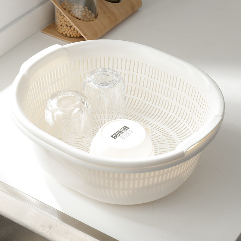 Imported from Japan thickened double-layer wash basket drain water basket plastic kitchen wash basin large creative fruit plate fruit basket