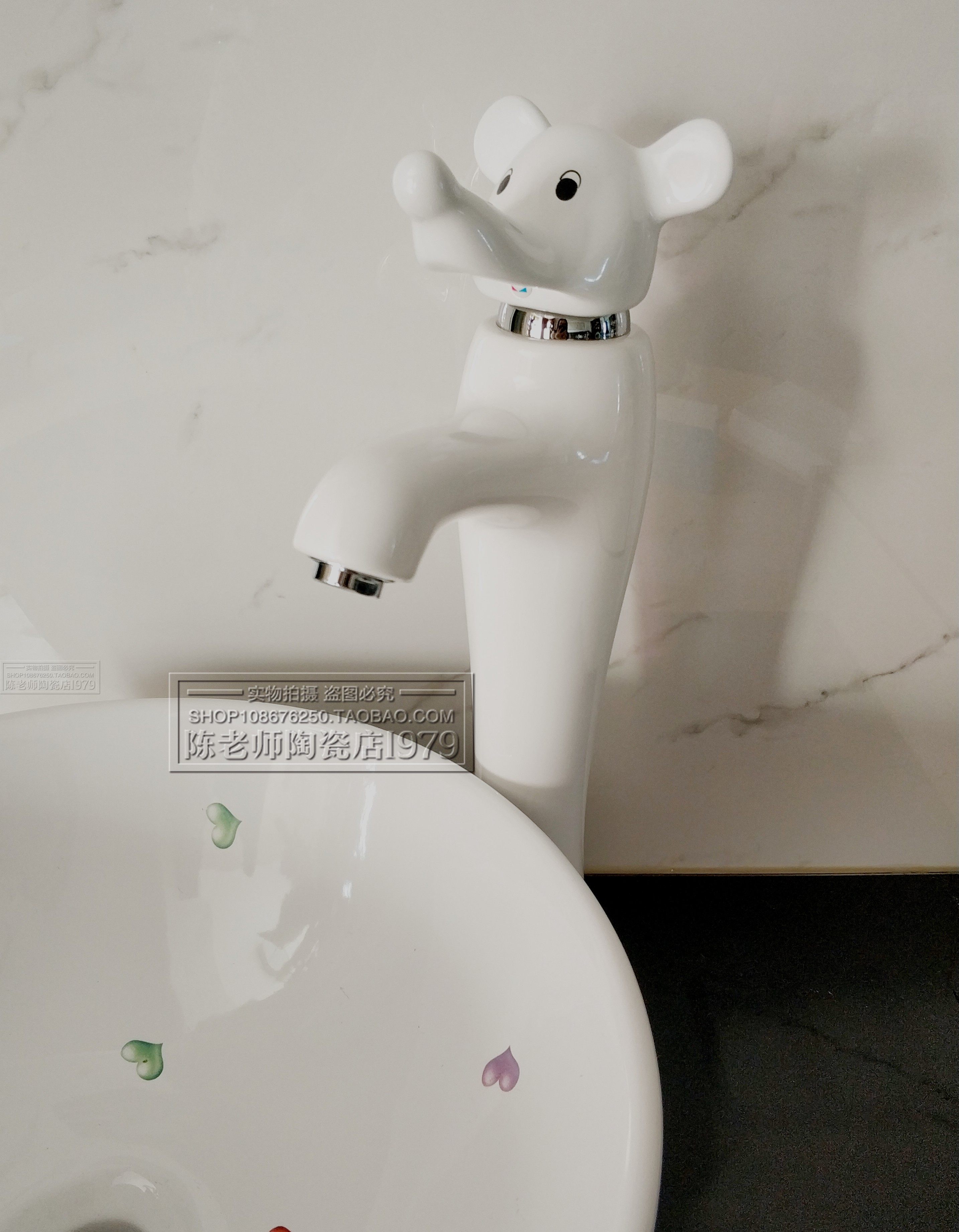 mnls ceramic long version hot and cold tap Children's bathroom Cartoon Elephant Rat Type White Terrace Basin High Tap