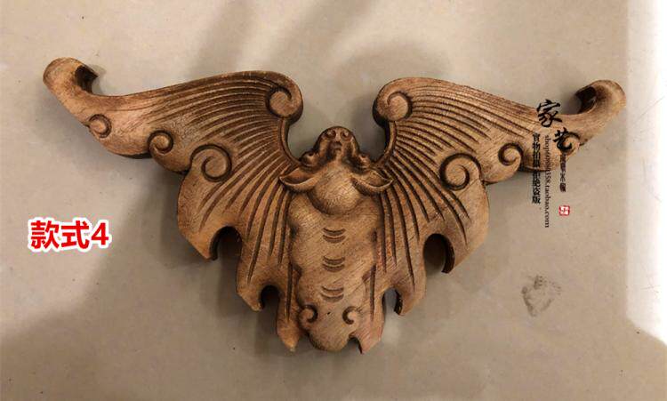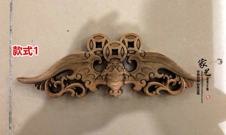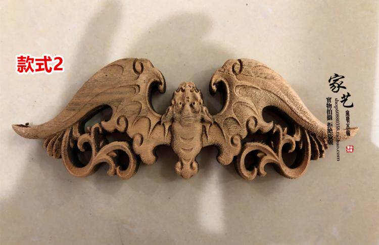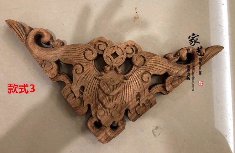 Dongyang wood carved camphor wood solid wood new Chinese decoration bat triangle appliqué small wall decoration handicraft corner flower