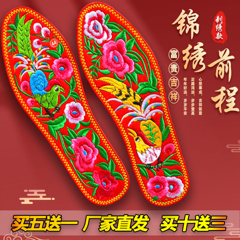 Summer embroidery new cotton fabric embroidered insole finished product thickened embroidered male and female this year handmade breathable sweat-Taobao