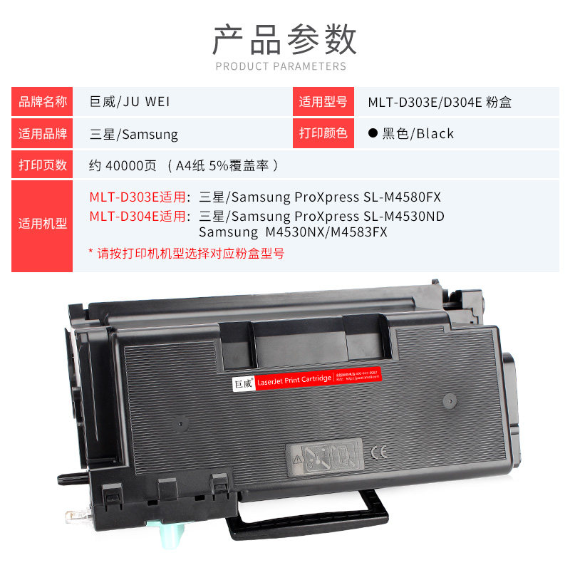 20000 pages MLT-D303L powder box (applicable SL-M4580FX) 40000 pages MLT-D303E powder box (applicable SL-M45