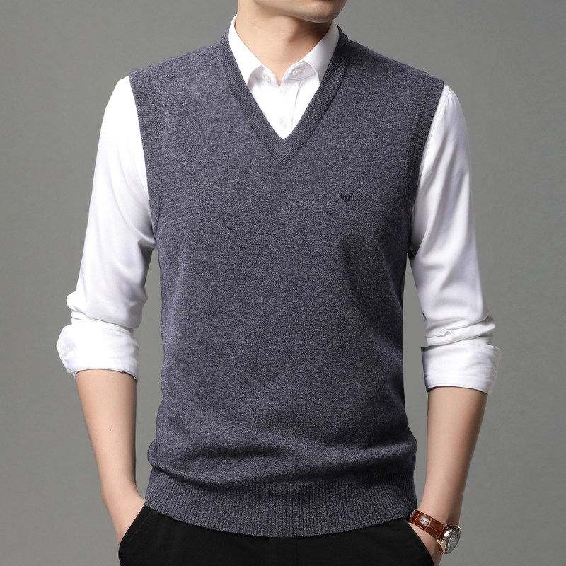 Hengyuan Xiangxiang Sweater Man 100 pure wool vest Autumn and Winter V led Dad to shoulder sweater in the old coat
