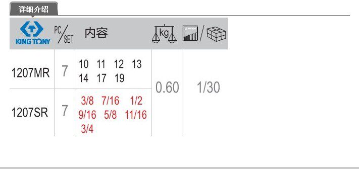 Taiwan KINGTONY blue band 7PCS public made of the British system May open wrench group set 1207MR 1207SR