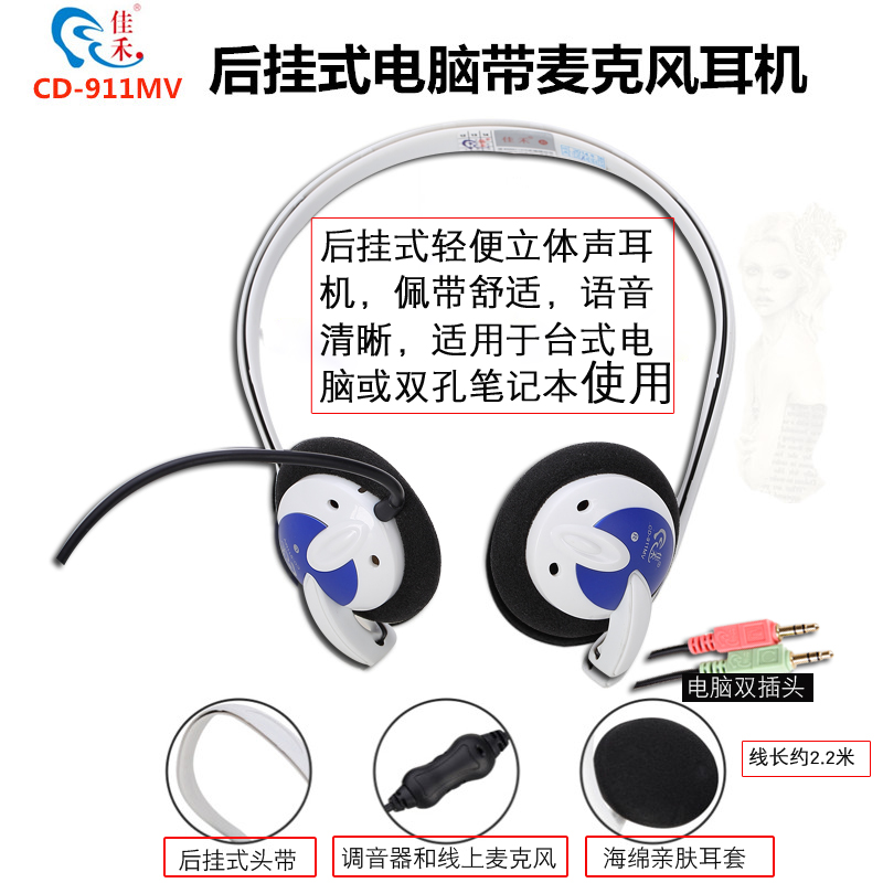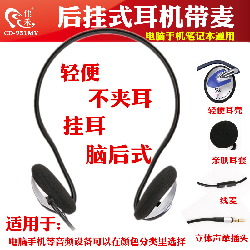 Jiahe CD-931MV headphone ear-hanging computer with machete back-hanging mobile phone general game cable desktop ear Mclaptop light rear neck Dai style poo with microphone long line to hear about the game
