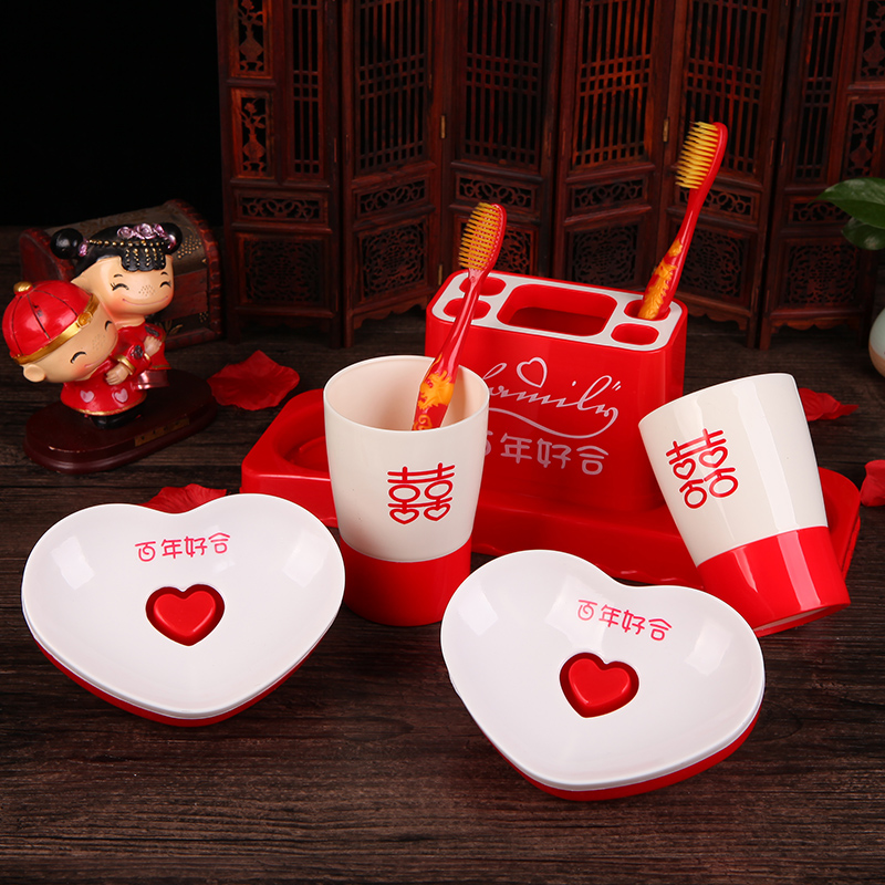 Wedding toiletries set Wedding couple tooth cup Red toothbrush mouthwash cup gift box Wedding props