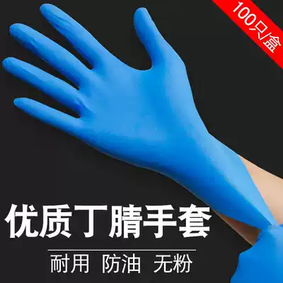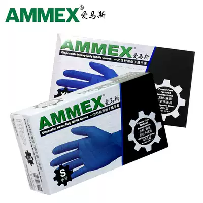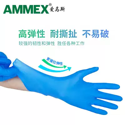 AMAS disposable gloves Food grade blue nitrile rubber experimental protective gloves thickened and durable 100