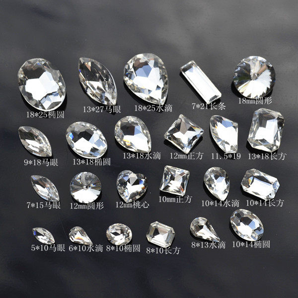 5*10 Marquise 6*10 water droplets 8*10 elliptic 8*13 water droplets 10*14 ellipse 7*15 Marquise 12mm circular 12mm heart 18mm circular 10*14