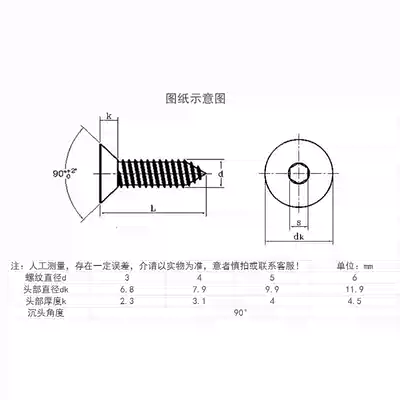 Black 8 Grade 8 High Strength Countersunk Head Hexagon Self-tapping Screw Flat Head Self-tapping Wood Screw M3M4M5M6 * 60