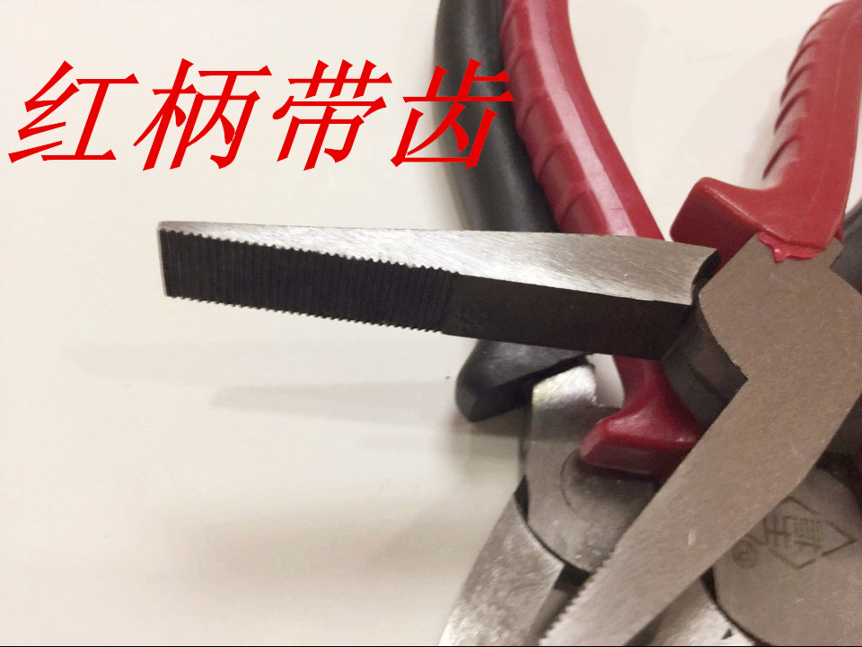 6 inch red put toothless thick flat mouth pliers 6 inch red handle has a toothed fine flat mouth forceps