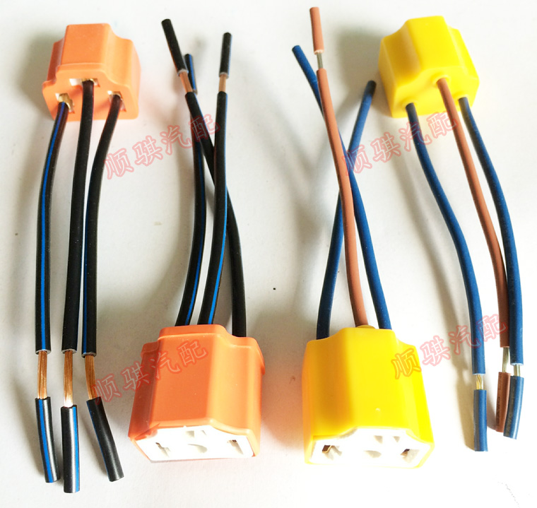 Car headlight socket plug high temperature resistant copper wire ceramic plug H4 ceramic lamp holder H4 socket lamp holder