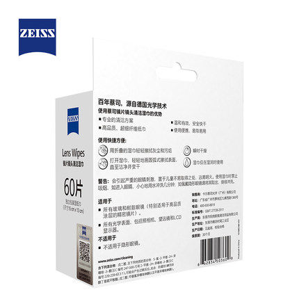 ZEISS Germany ZEISS Optical Mirror wipe Paper Camera lens paper Glasses paper Cleaning wet wipes 60 pieces