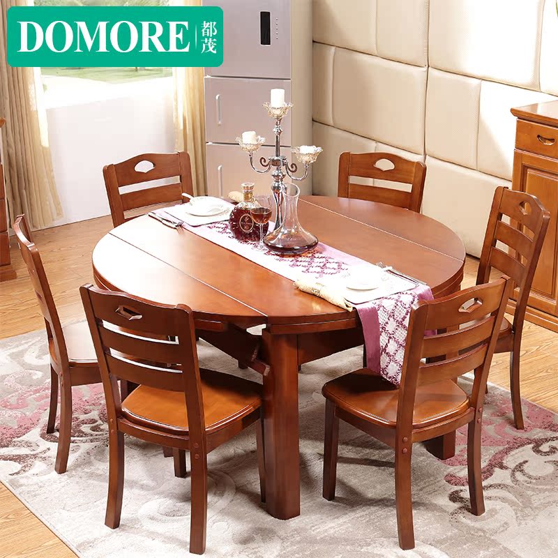 Dumao furniture Chinese solid wood square round dining table oak dining table and chair combination retractable folding table four or six chairs