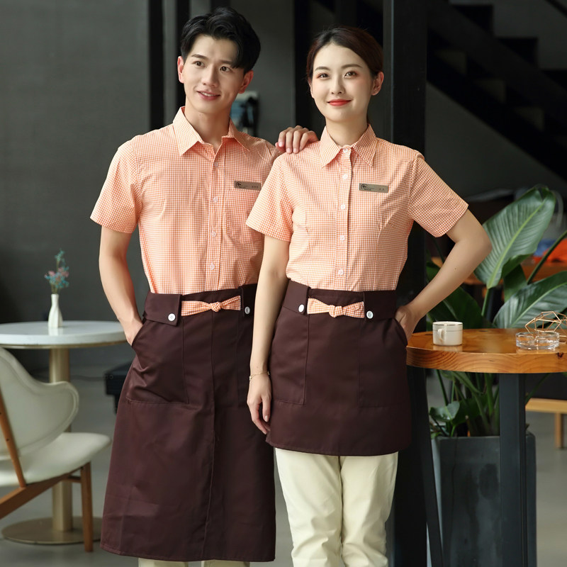 Men's Orange grid Top Women's Orange grid Top Men's coffee grid Top Women's Coffee grid Top Men's Red grid Top Women's Red grid Top Men's Orange grid Top Plus apron Women's Orange grid Top