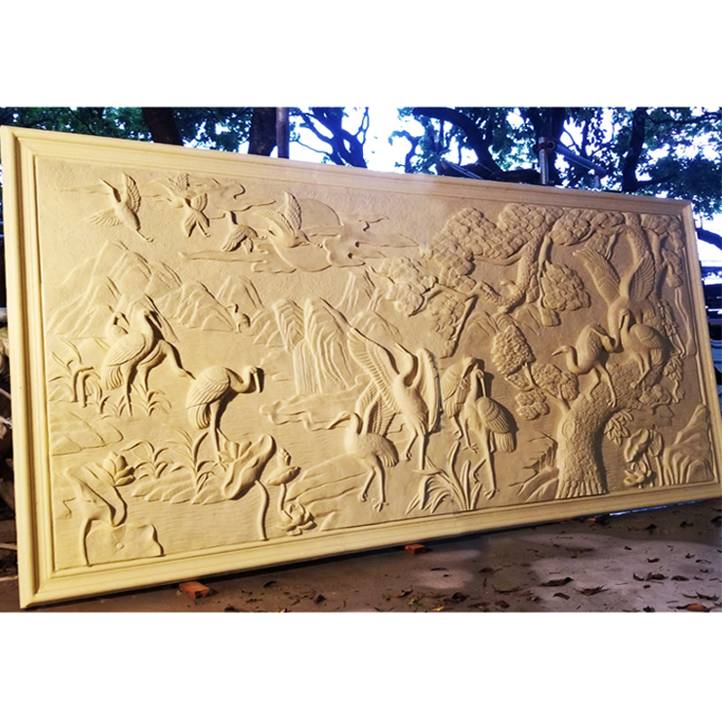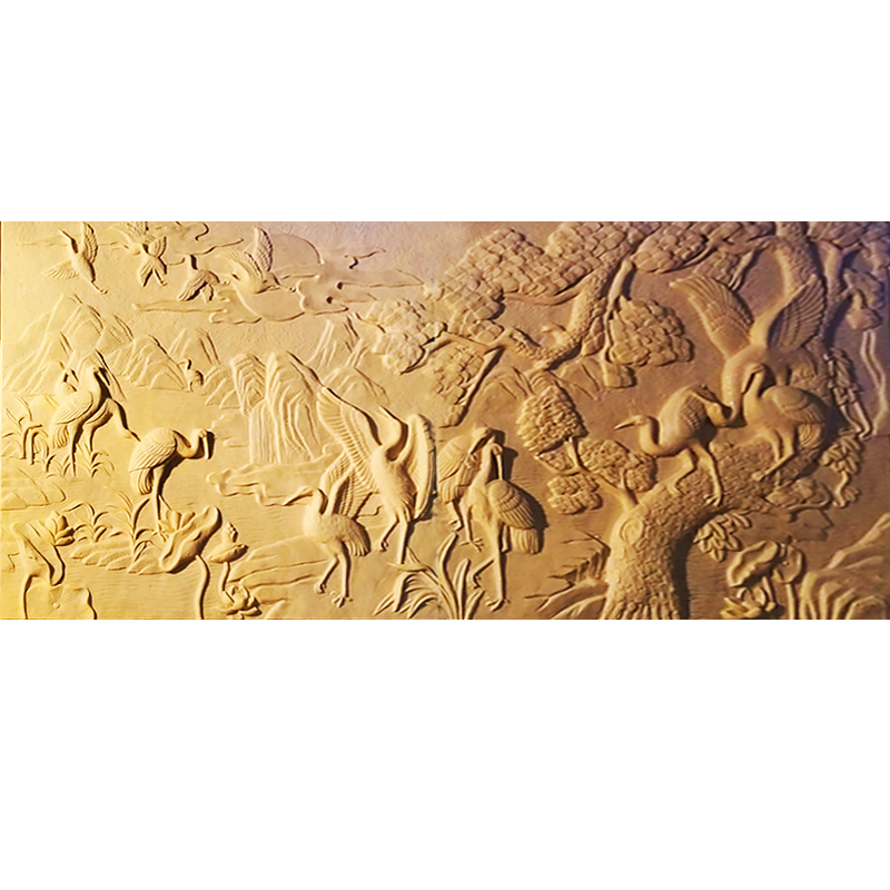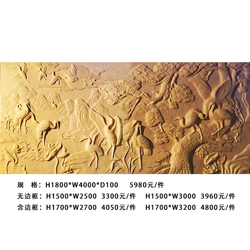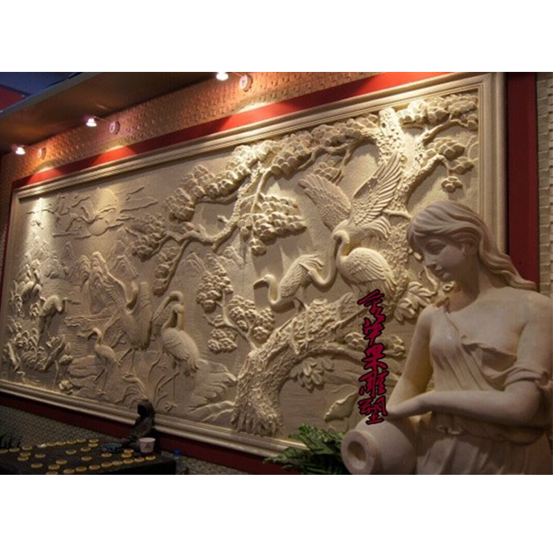 Sandstone Relief Background Wall TV Glass Fiber Imitation Bronze Pine Crane Picture Mural Figure Animal Scenery Sculpture Decoration Painting