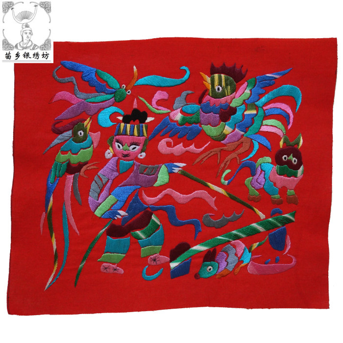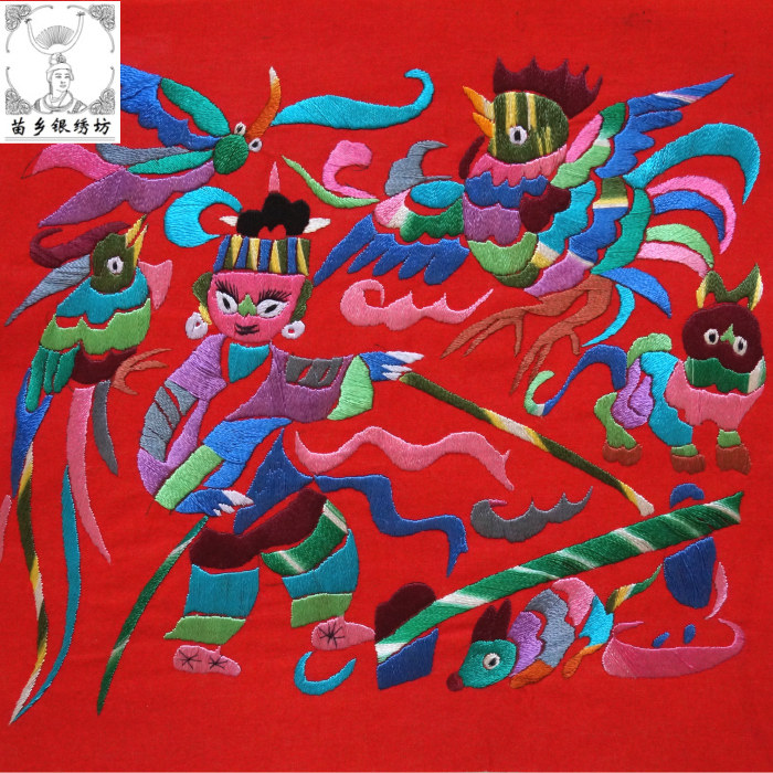 Miao Xiang Silver Embroidery Workshop Handmade Miao Embroidery Guizhou Taijiang shithole Miao ethnic embroidery painting 32X32 Chung Mi Family Residence Ornament Gift