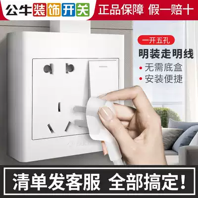 Bull switch socket open ultra-thin with single open one open double cut 5 five five holes two three plug household 10A power panel