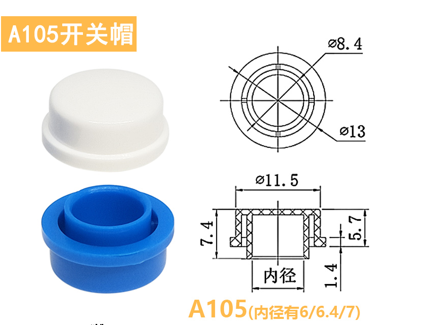 Button cap A105 with side can be matched with 12X12 series cylindrical handle light switch color button cap