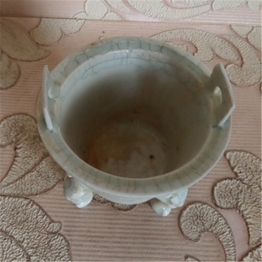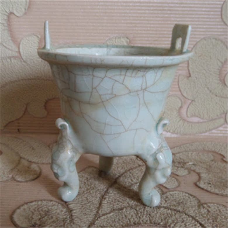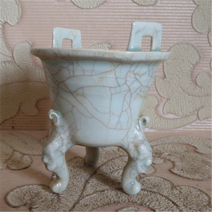 Jingdezhen antique porcelain Song Lake Tian Kiln Total Handmade Pinch Sculpture Double Dragon Three-foot Incense Stove Antique Ancient Playful Pendulum collection