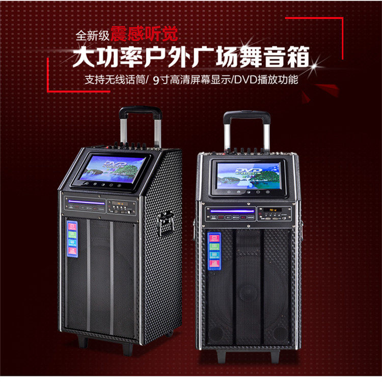 Xilida outdoor multi-functional mobile trolley battery audio square event stage speaker DVD9 inch display