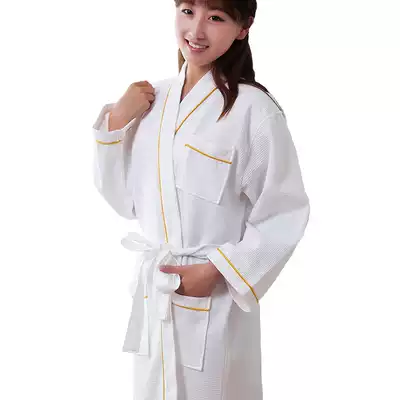 Apricot light blue light yellow white gold decorative strip long waffle bathrobe silver decorative strip long waffle bathrobe