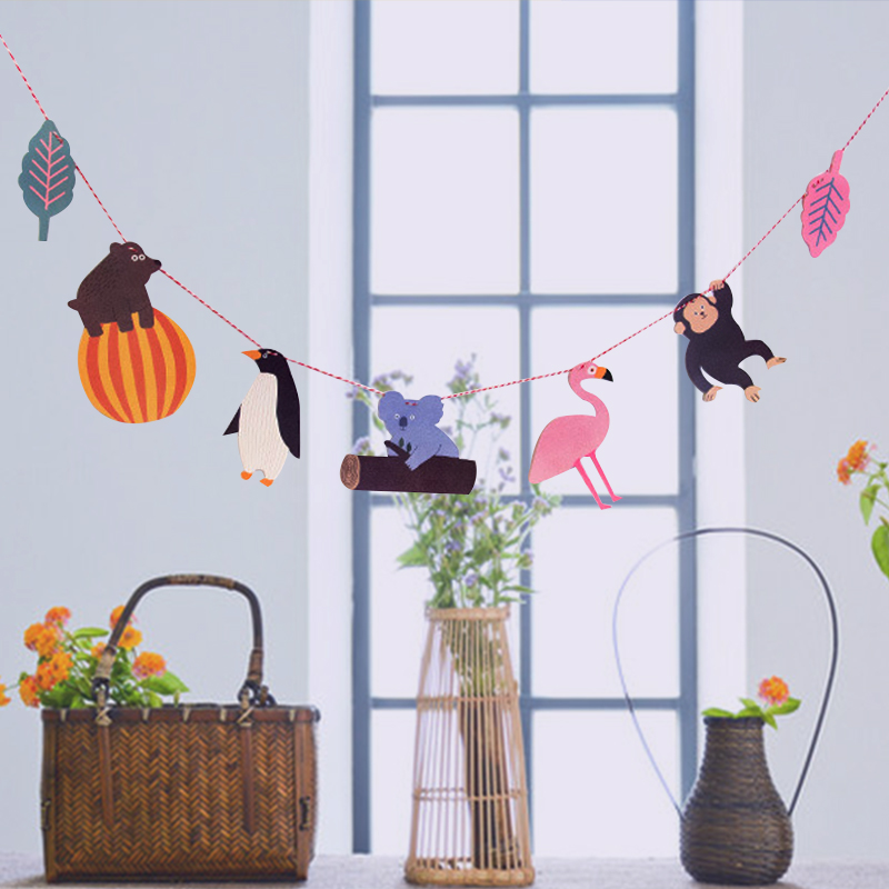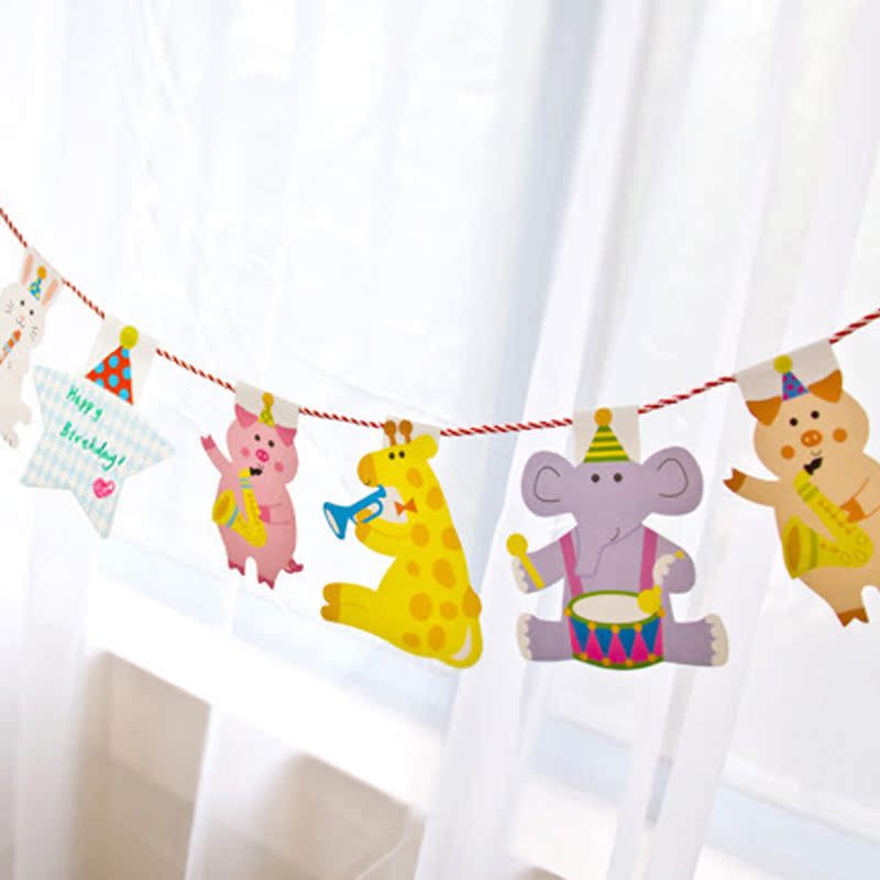 Children's Birthday Party Banners Pull Bar Baby Full Moon Decoration Arranged Colorful Flags Happy Birthday Animal Hanging Banner Flags