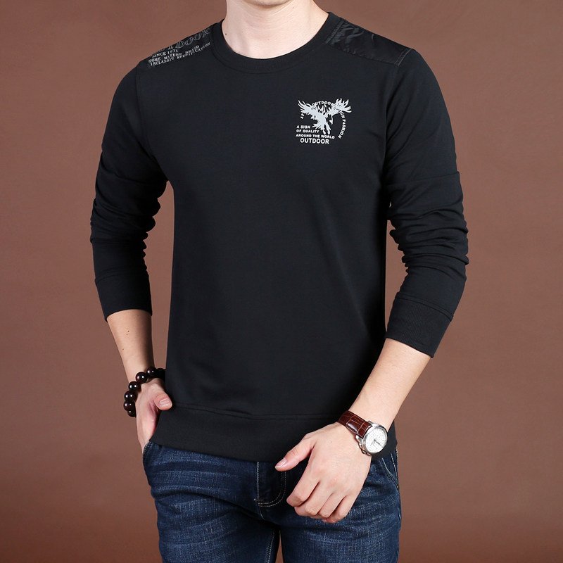 Spring Autumn Season Men's Round Collar Pure Color Long Sleeves T-shirt Men's Clothing Sports Great Size Loose Business Casual T-Shirt Male Tide